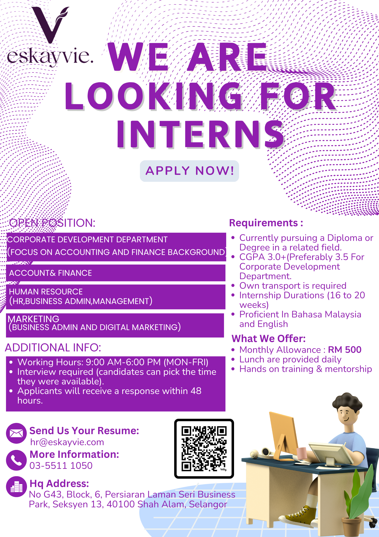 | Eskayie Sdn. Bhd. | Marketing, Business, Information Technology (IT), Finance | 22 August 2025 | 2025 | |