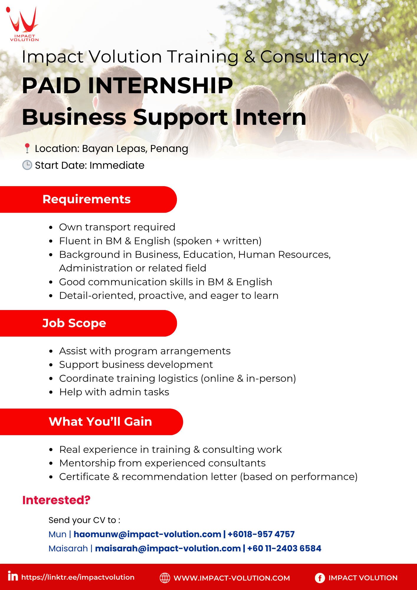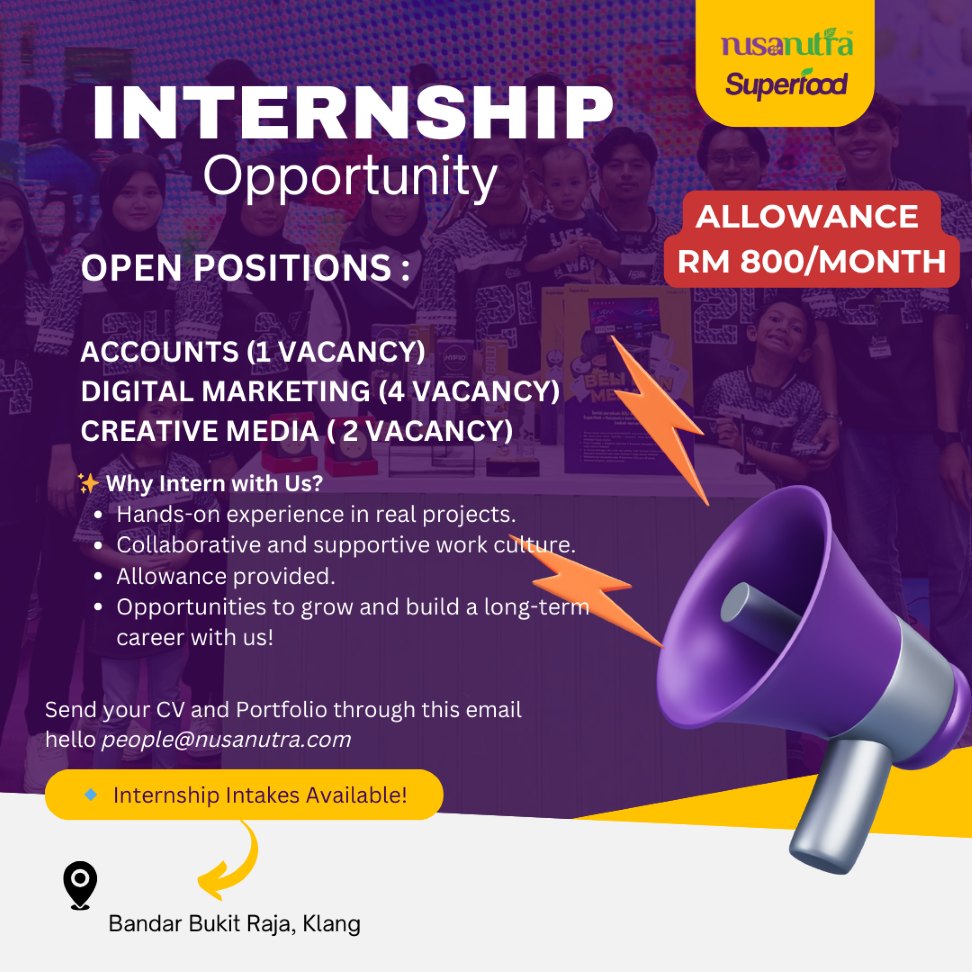 | Honsenz Holdings Group Sdn Bhd | Business Administration, Marketing, Graphic Design, Human Resources (HR) | 21 May 2025 | 2025 | |