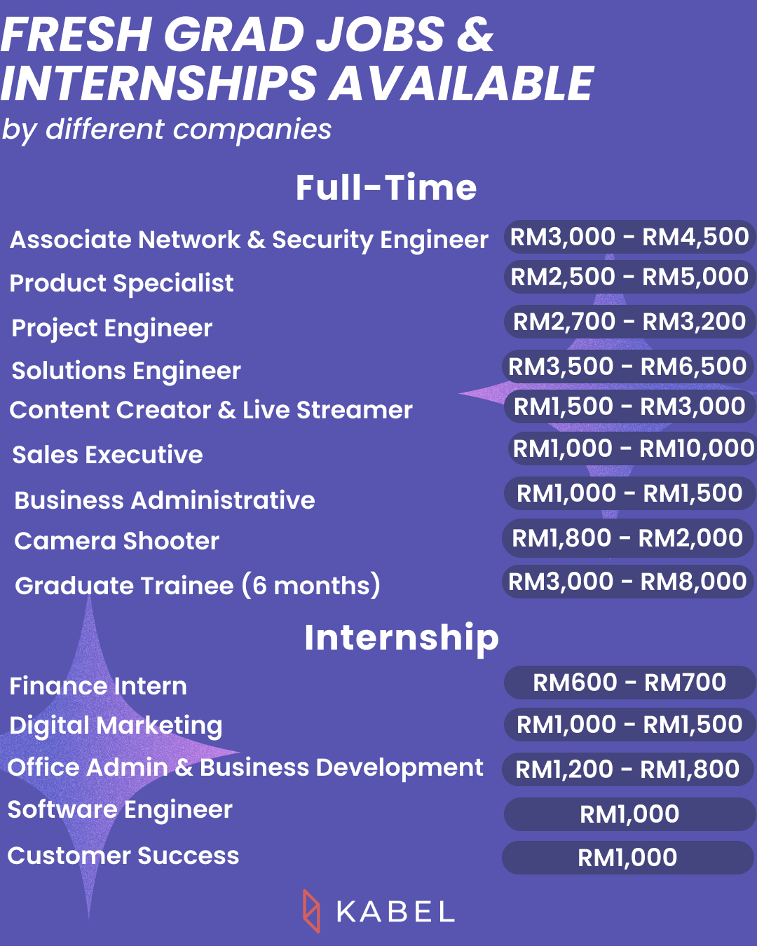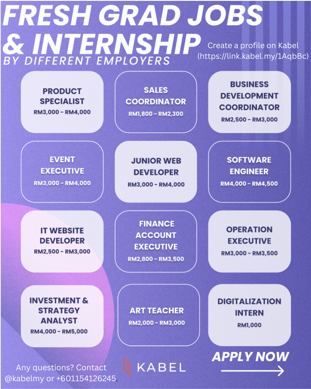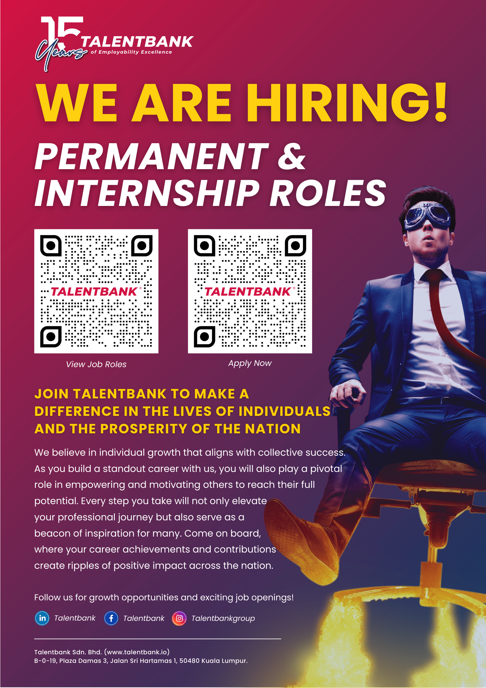 | Talentbank Sdn. Bhd. | Human Resources (HR), Marketing, Finance, Operations, Information Technology (IT), Event Management, Sales & Marketing. | 24 September 2025 | 2025 | |