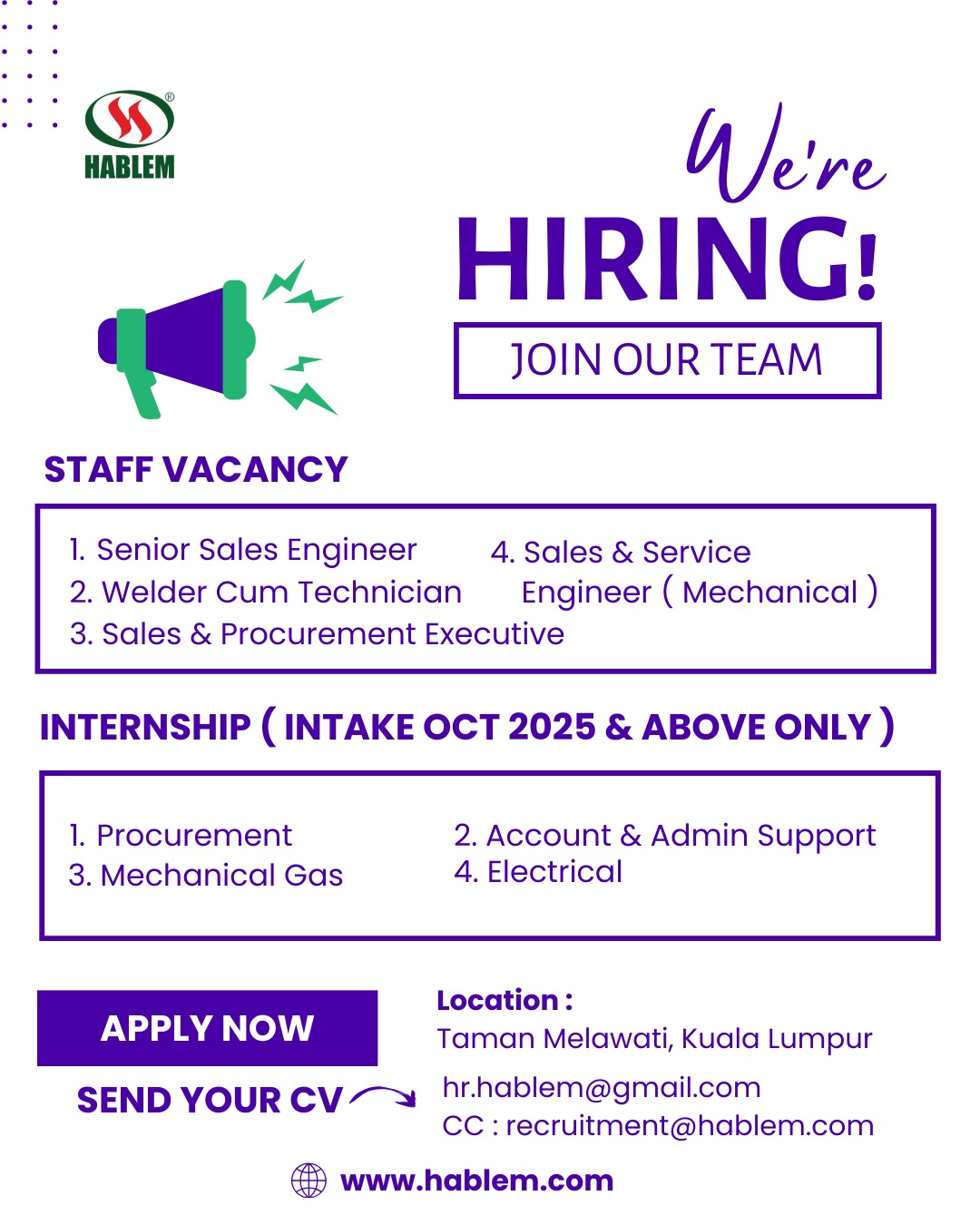 | HABLEM OIL & GAS (M) SDN BHD | Finance,Accounting Supply Chain Management (SCM),Engineering,Business | 1 October 2025 | 2025 | |