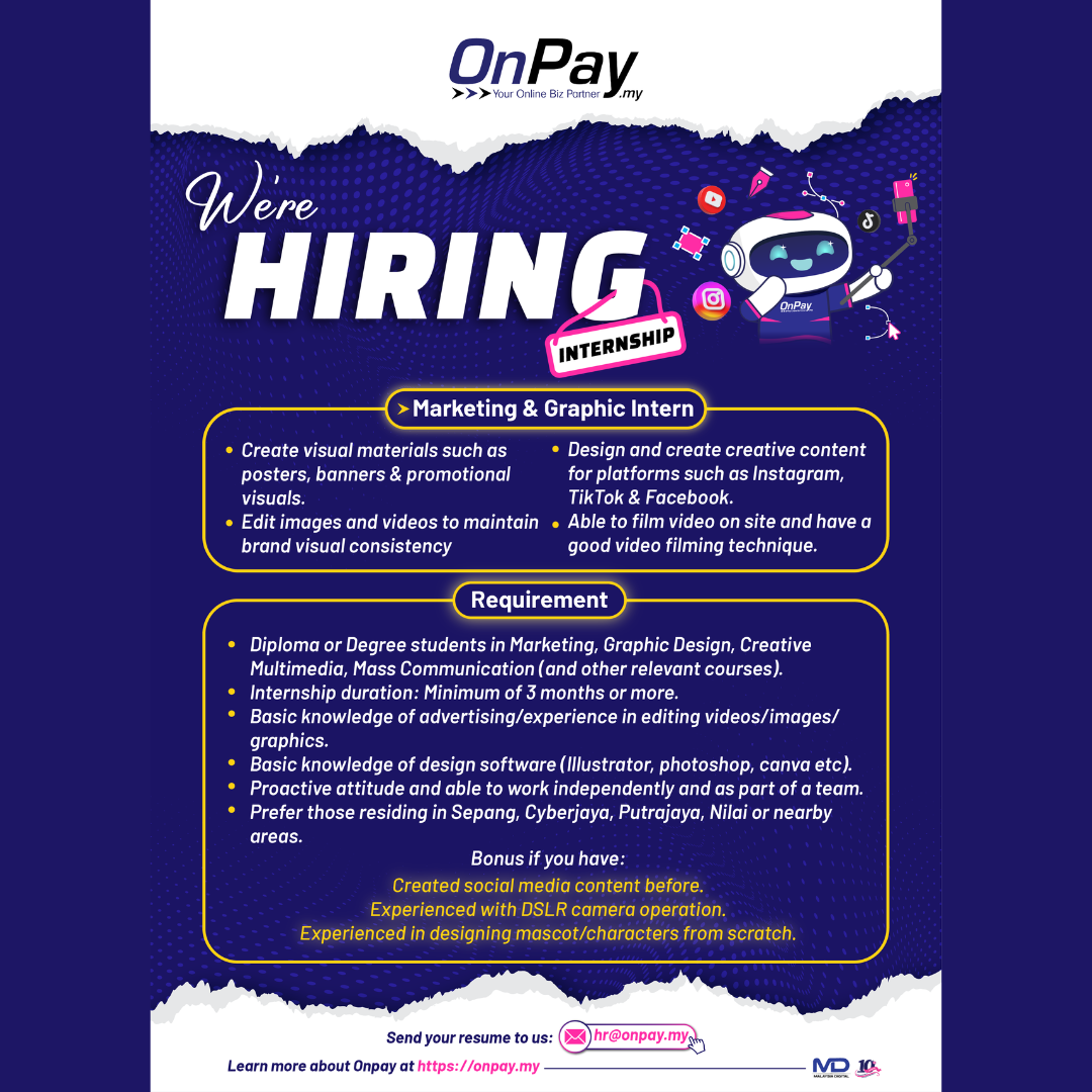 | Onpay Solutions Sdn Bhd | Marketing,Graphic Design | 10 October 2025 | 2025 | |