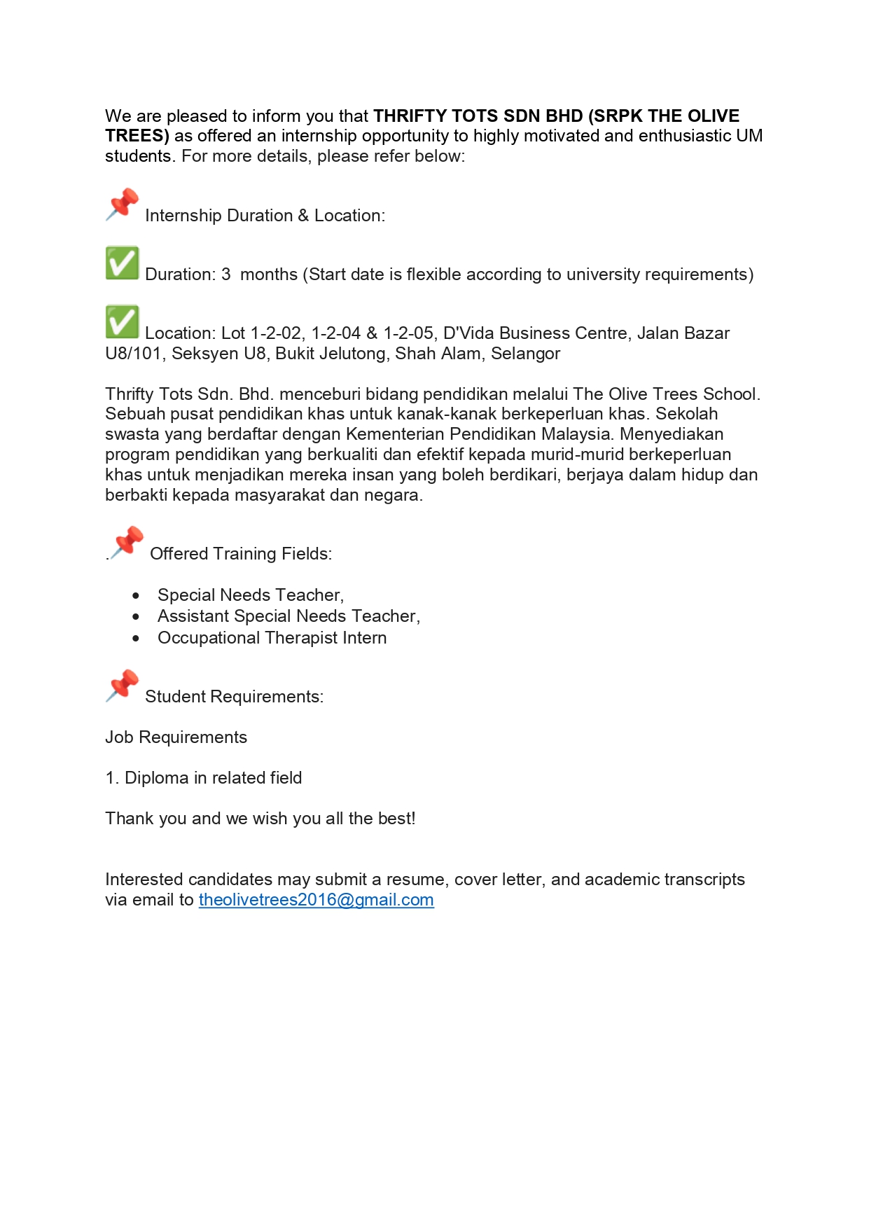 | THRIFTY TOTS SDN BHD (SRPK THE OLIVE TREES) | Psychology , Education | 10 October 2025 | 2025 | |